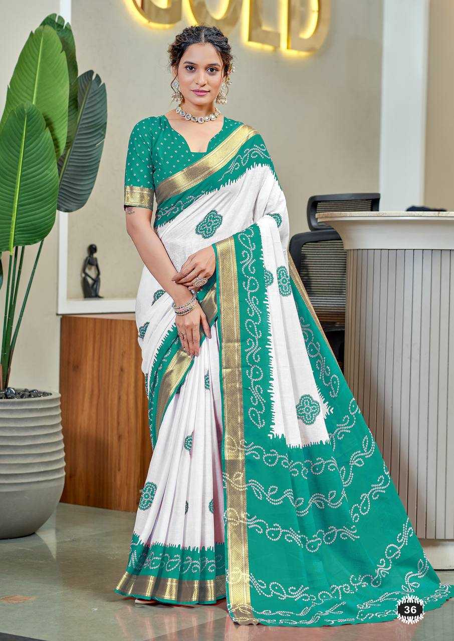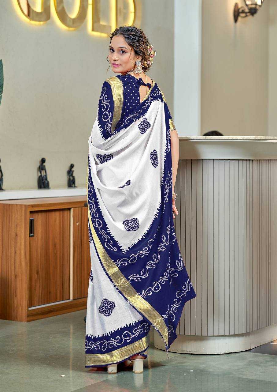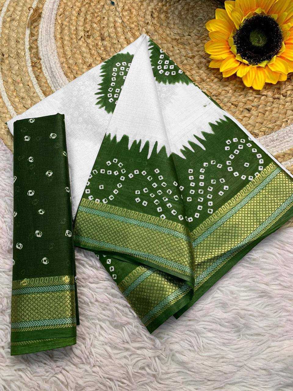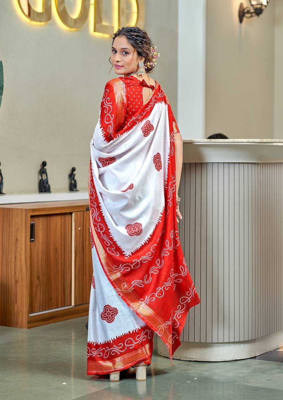 5.50 MTR MULMUL BANDHANI BLOCK PRINT WITH HEAVY ZARI BORDER SAREE WITH 0.90 MTR BANDHANI PRINT BLOUSE HEVY BORDER RUNNING BLOUSE PIECE