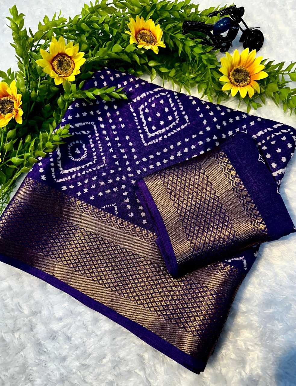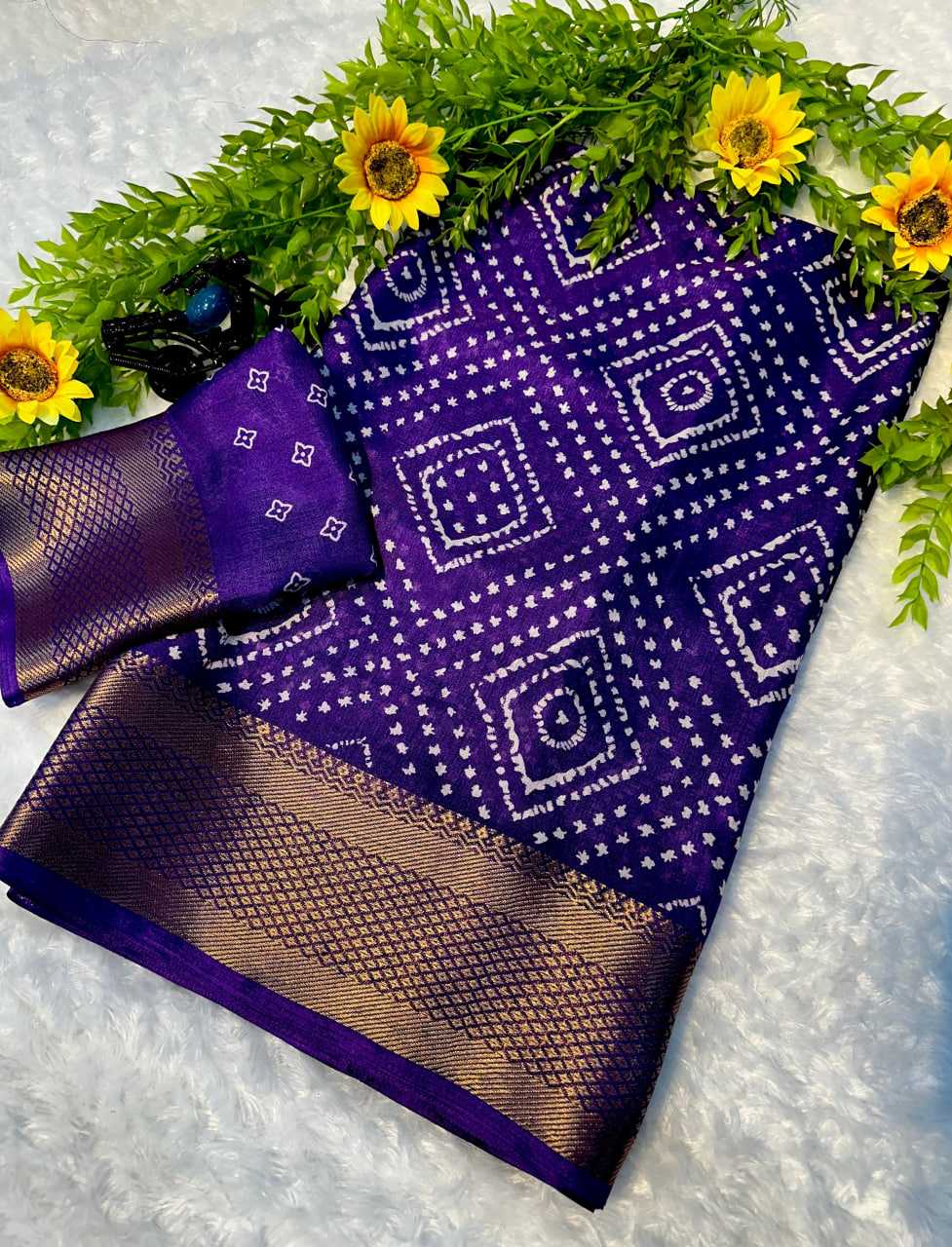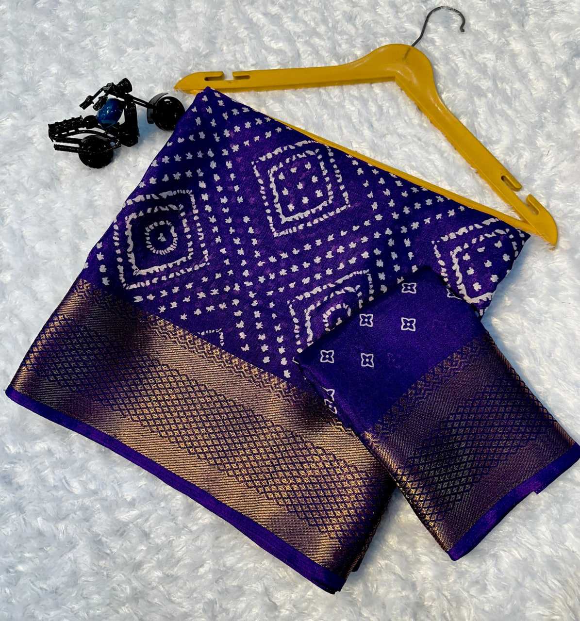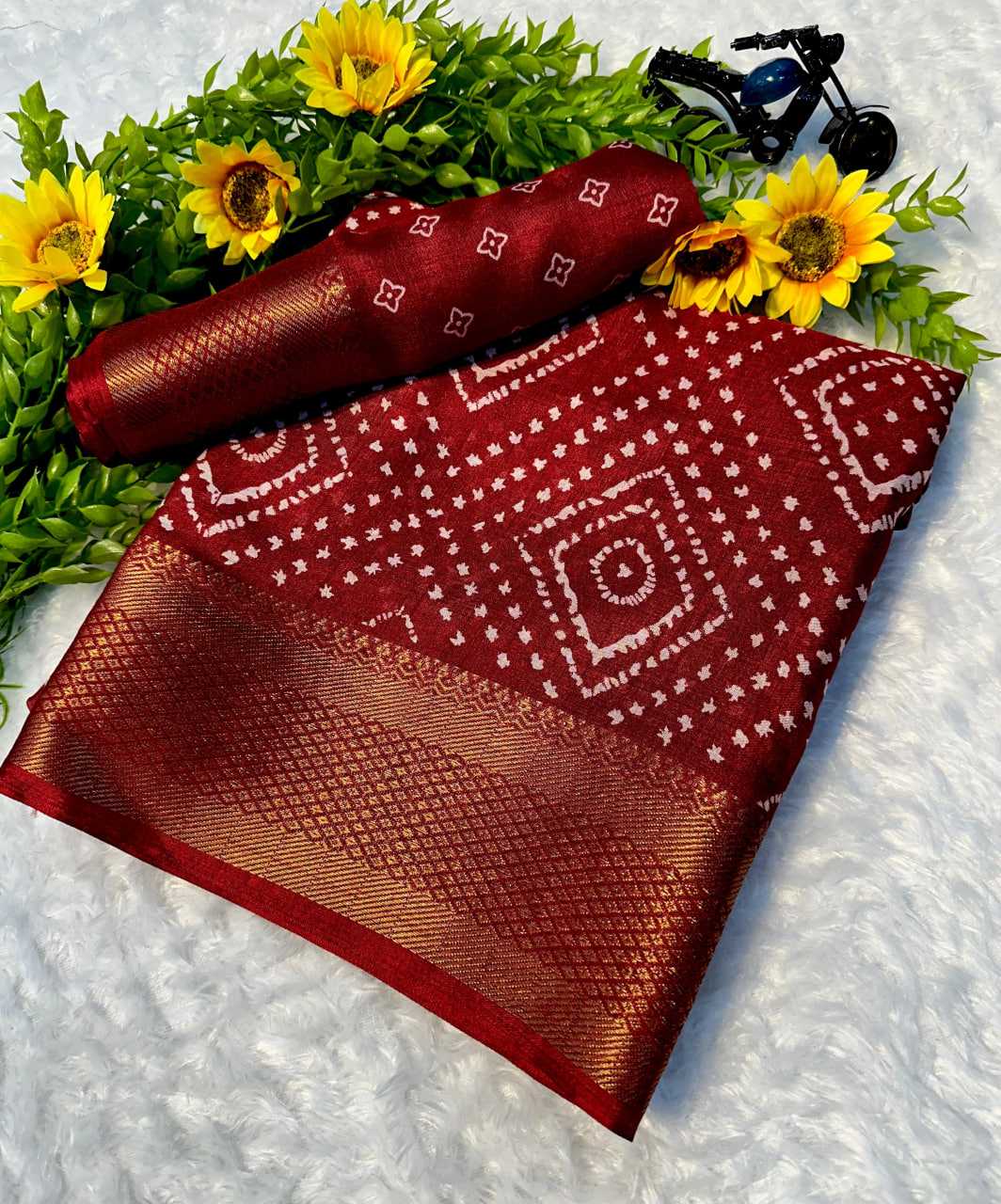 Pattern-bandhani print saree with Zari jacquard border & pallu with printed blouse.
