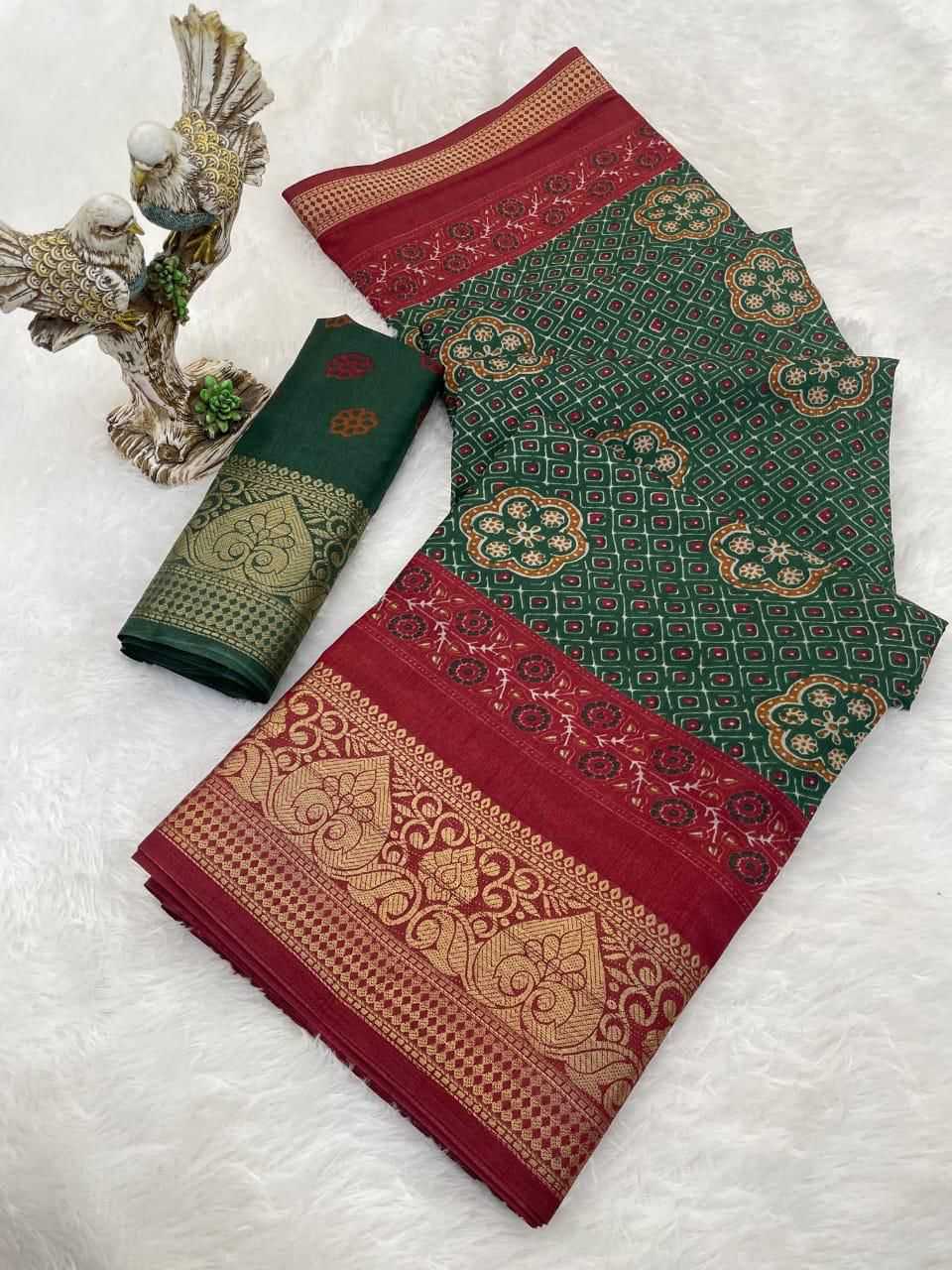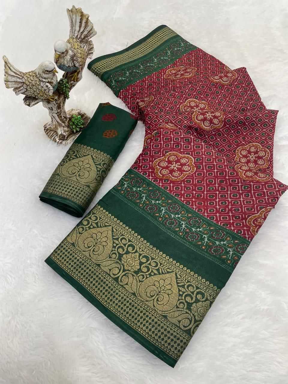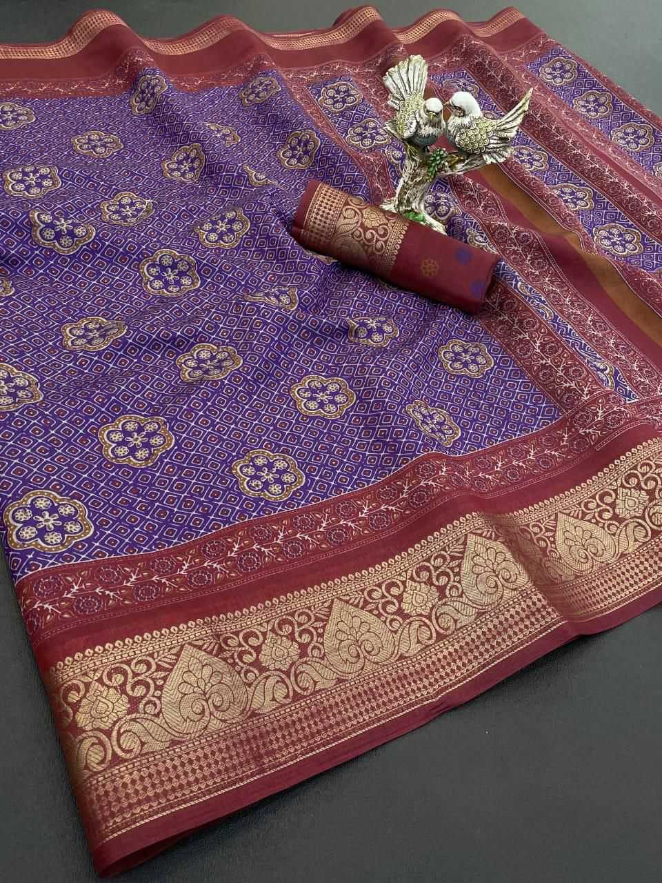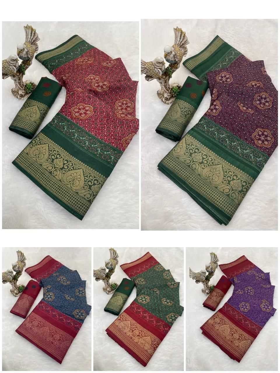 Pattern-bandhani print saree with Zari jecard kanjivaram zari boder & pallu with printed blouse.