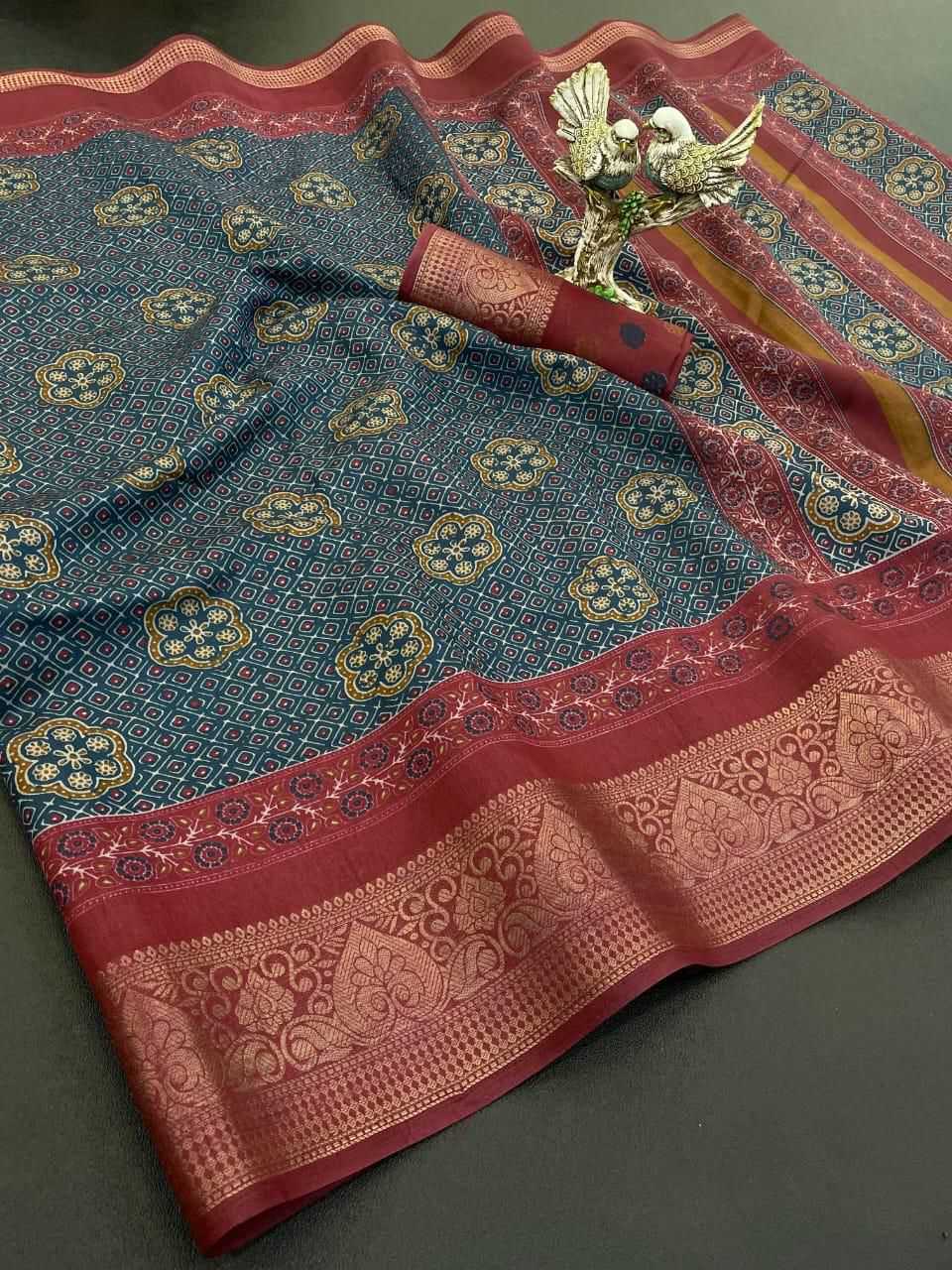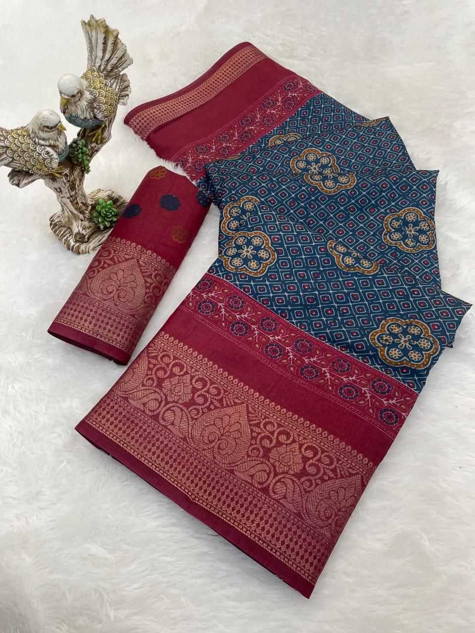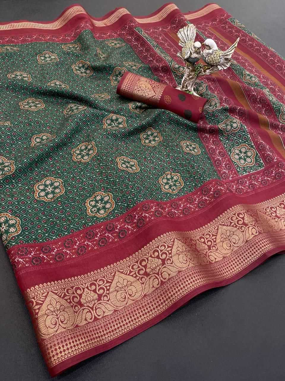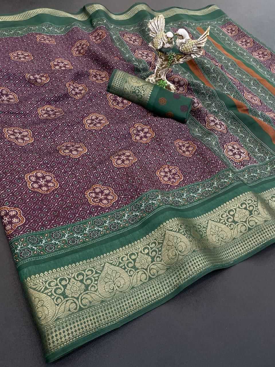 Pattern-bandhani print saree with Zari jecard kanjivaram zari boder & pallu with printed blouse.