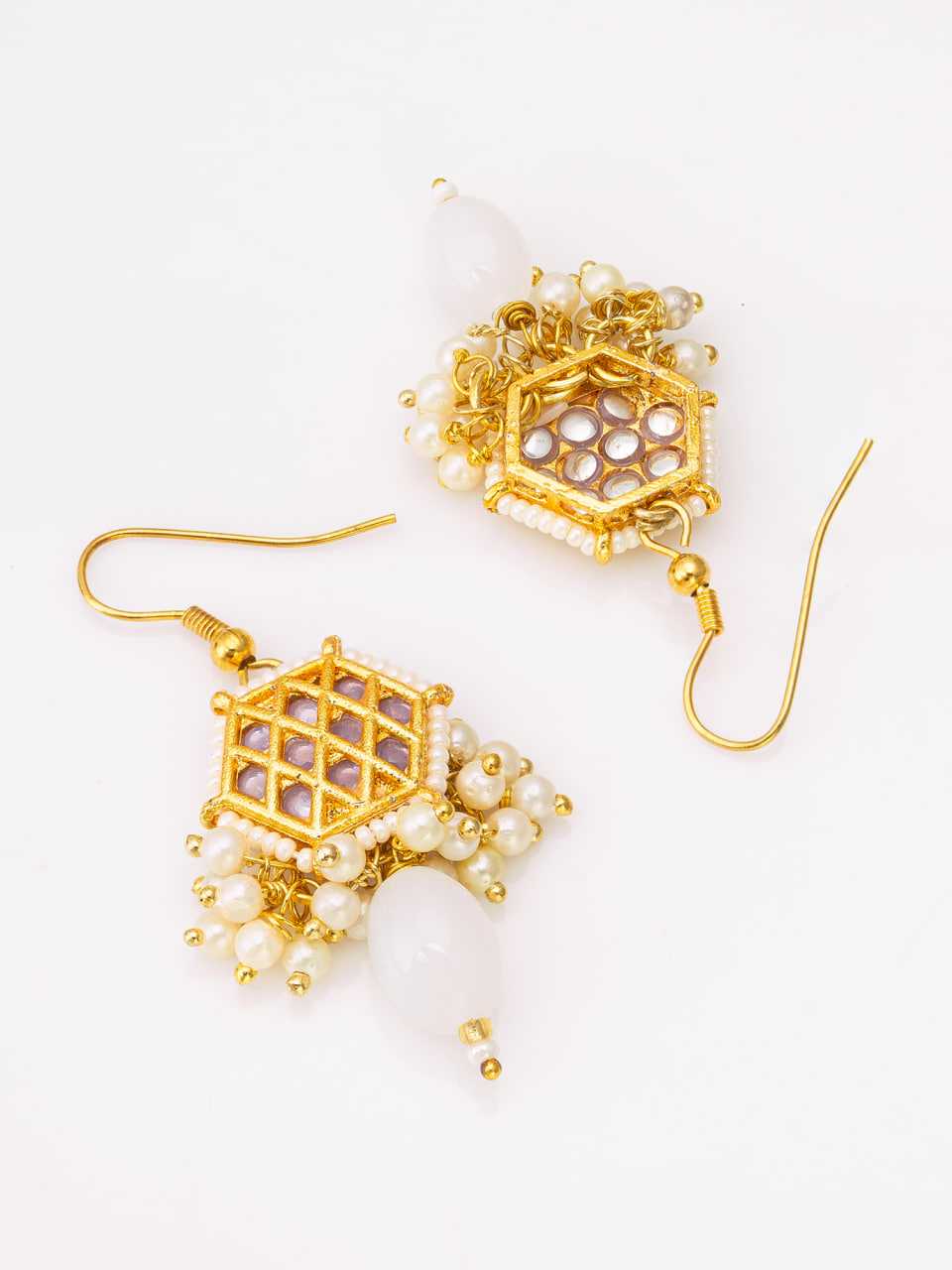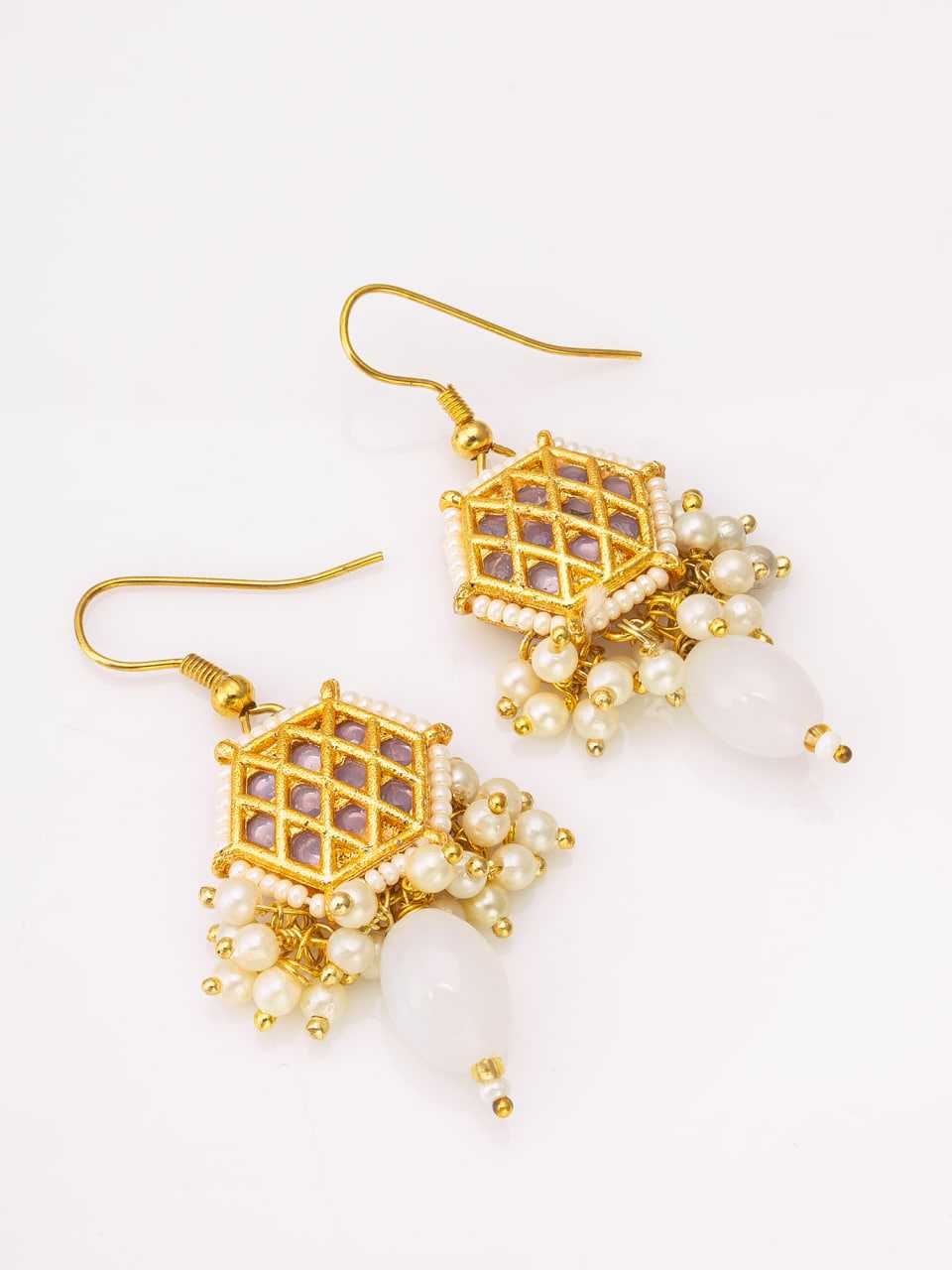 Premium quality brass high gold necklace set crafted with intricate detailing and matte finish for a luxurious appeal. The necklace is adorned with designer motifs, highlighted by elegant pearl drops and vibrant stone accents in white and ruby tones. Paired with matching earrings, this set perfectly blends tradition with sophistication, making it ideal for weddings, festive occasions, or gifting. Durable, stylish, and versatile, it adds timeless charm to any outfit.