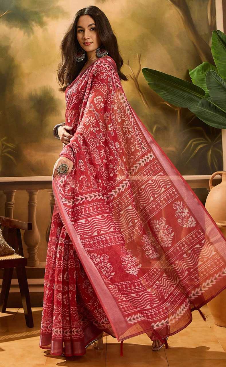 Description: Made from soft and breathable linen cotton, this saree combines everyday comfort with timeless elegance. The lightweight texture ensures an easy drape, perfect for long hours of wear without compromising style.
