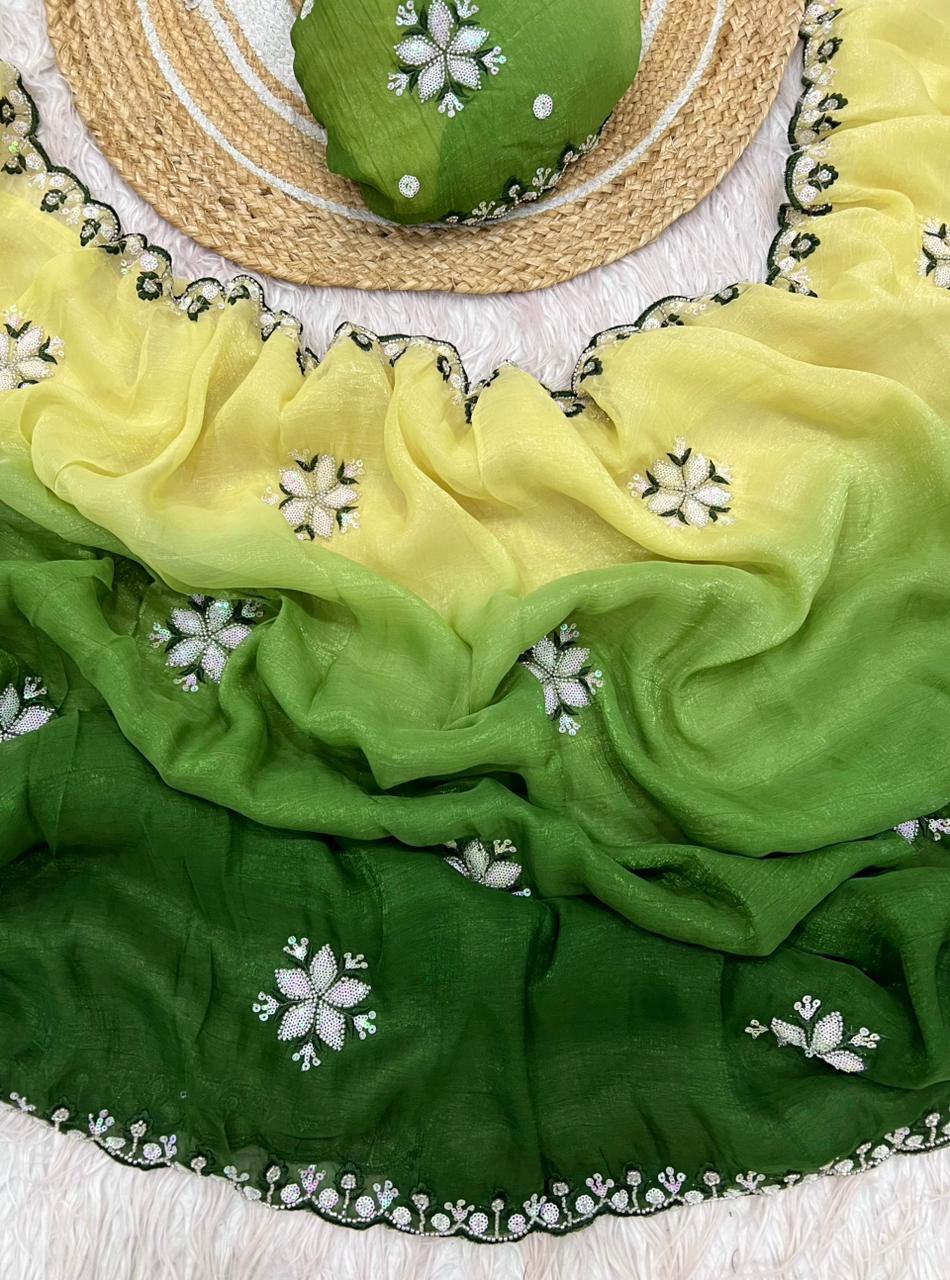 Experience sheer elegance with this beautifully crafted Peding Crunchy Fabric Saree, featuring: