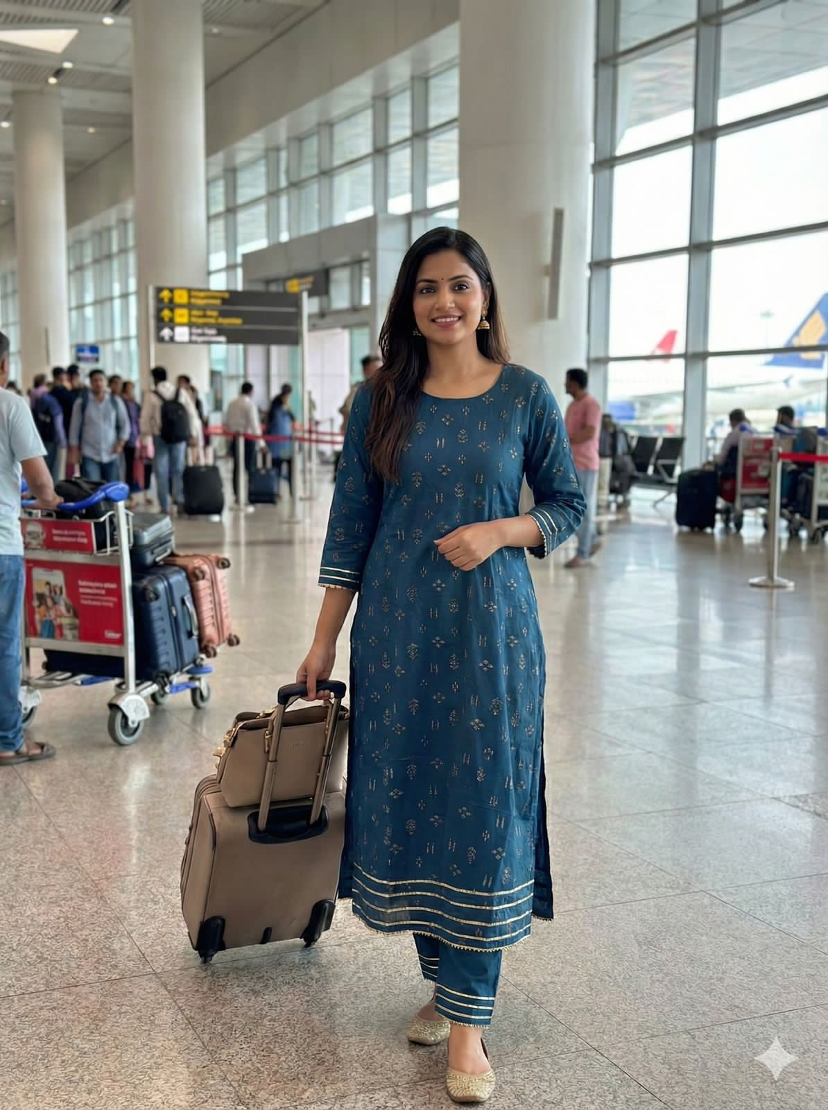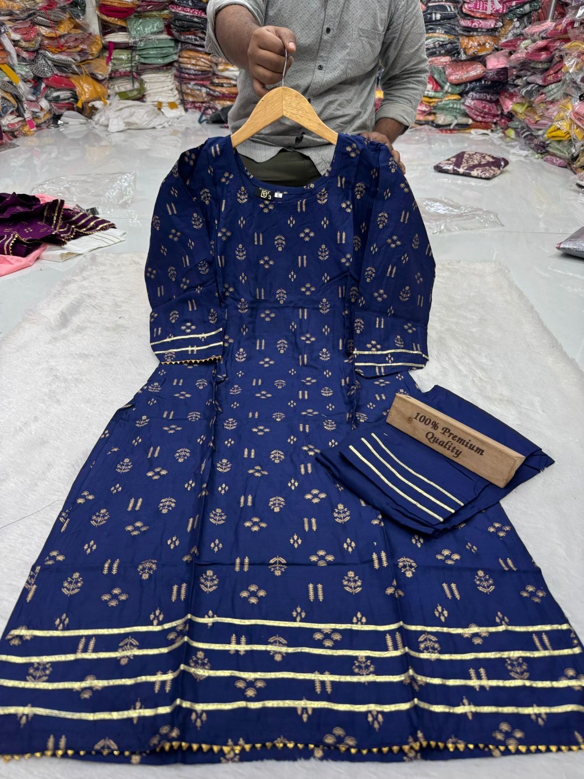 • Kurti Fabric: Soft rayon cotton with elegant Zari and Foil print