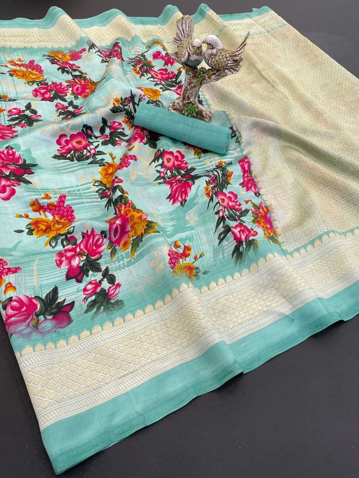 Pattern - Flower print saree with pallu with printed blouse.