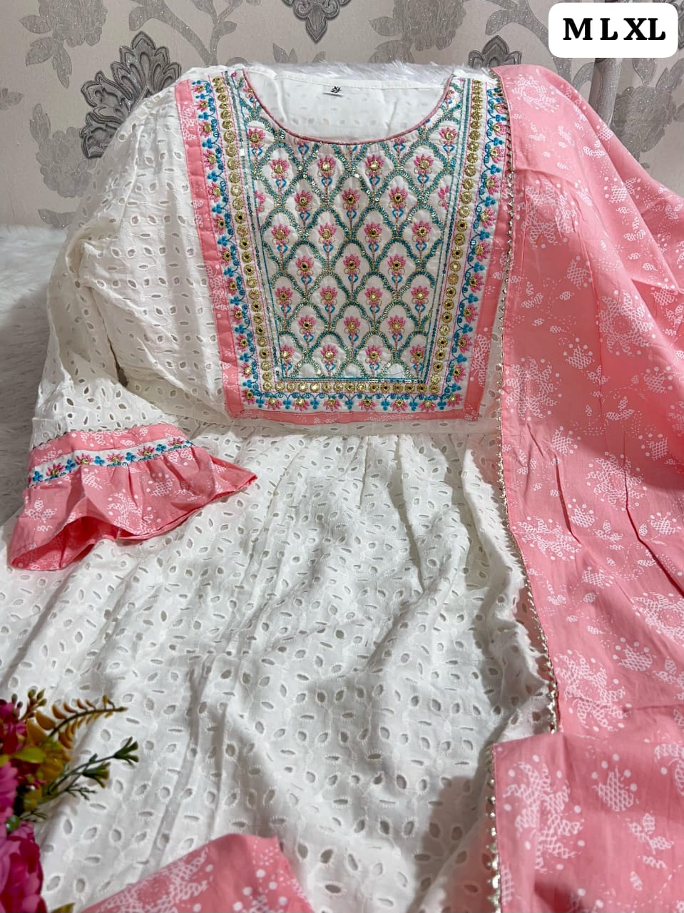 Step into effortless elegance with this premium cotton kurti set, designed for comfort, style, and versatility. The kurti is crafted from cotton sifly and cotton nyra, featuring lining, sequence embroidery, and gota lace detailing for a polished, traditional look.