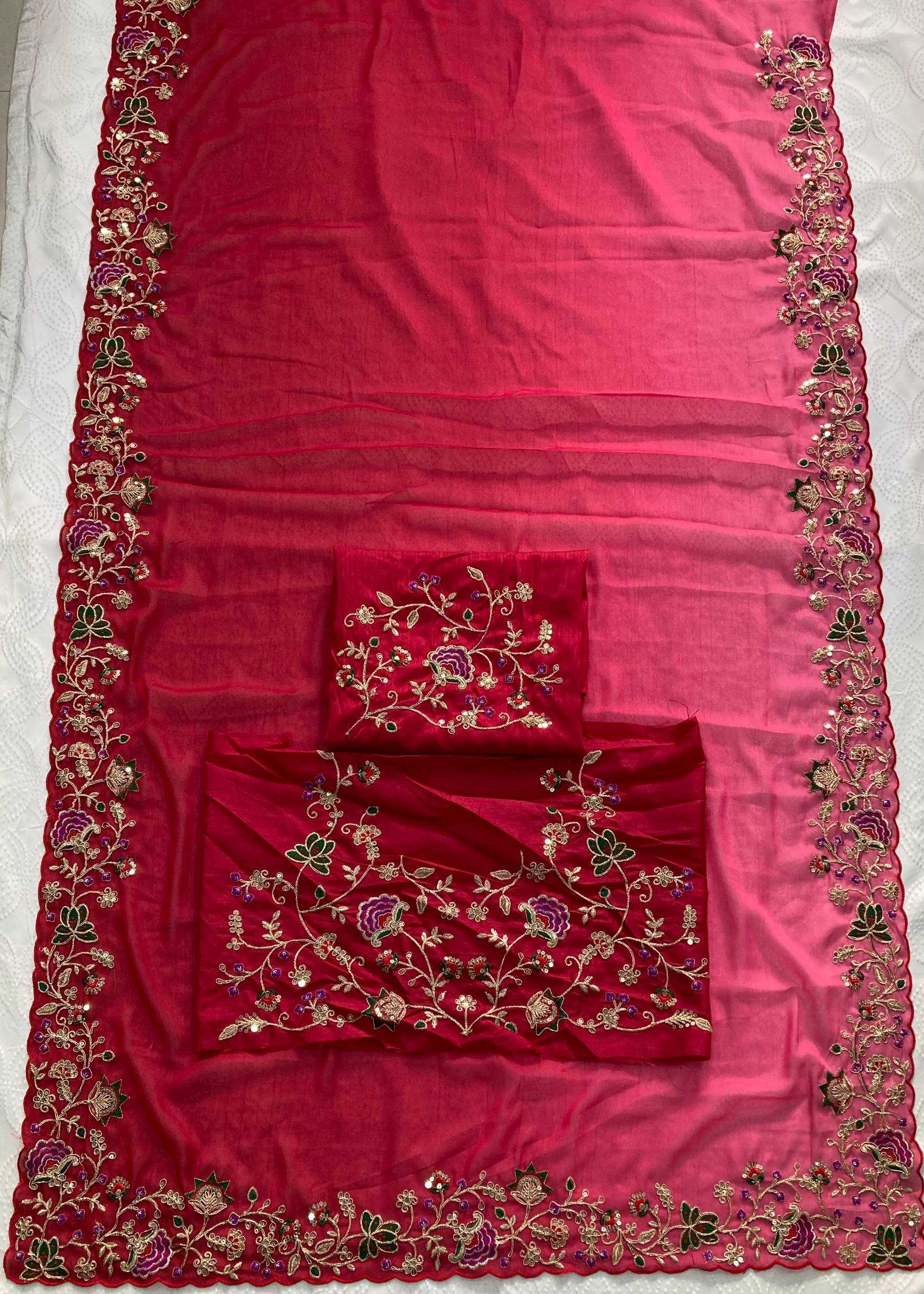 Looking some one for this same padding colour beautiful Saree for wedding on premium Soft Star Georgette fabric with Embroidery cut Work aarco Border With mono banglory silk Work blouse Peice.
