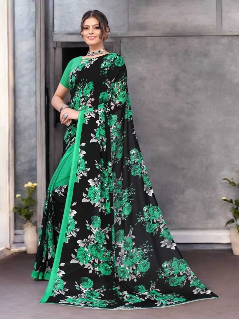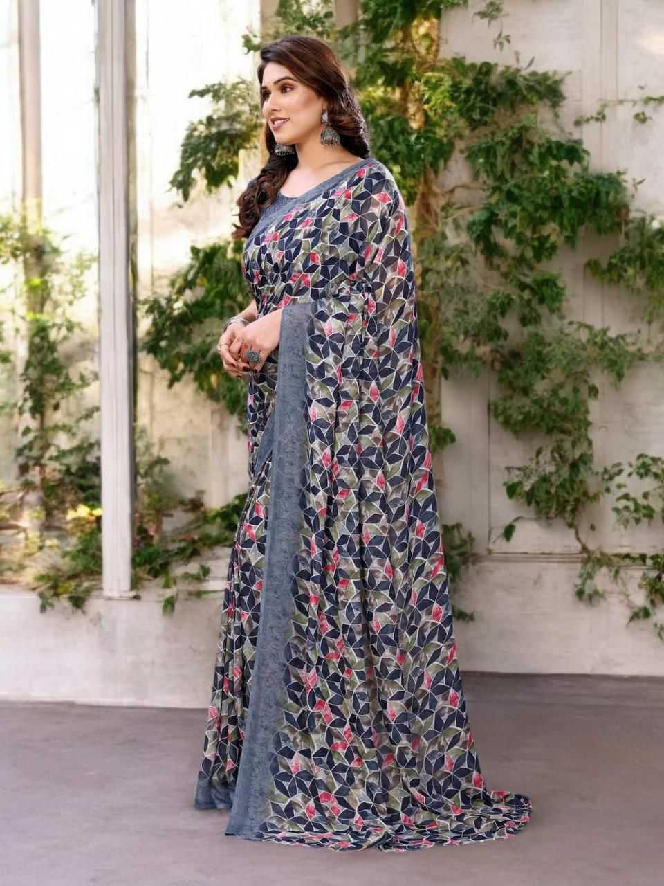 Pattern-print saree & pallu with printed blouse.COLORS MAY DIFFER LITTLE BIT.