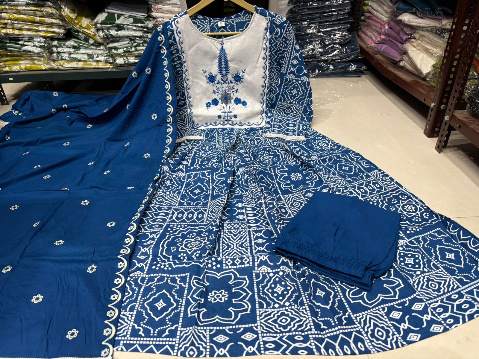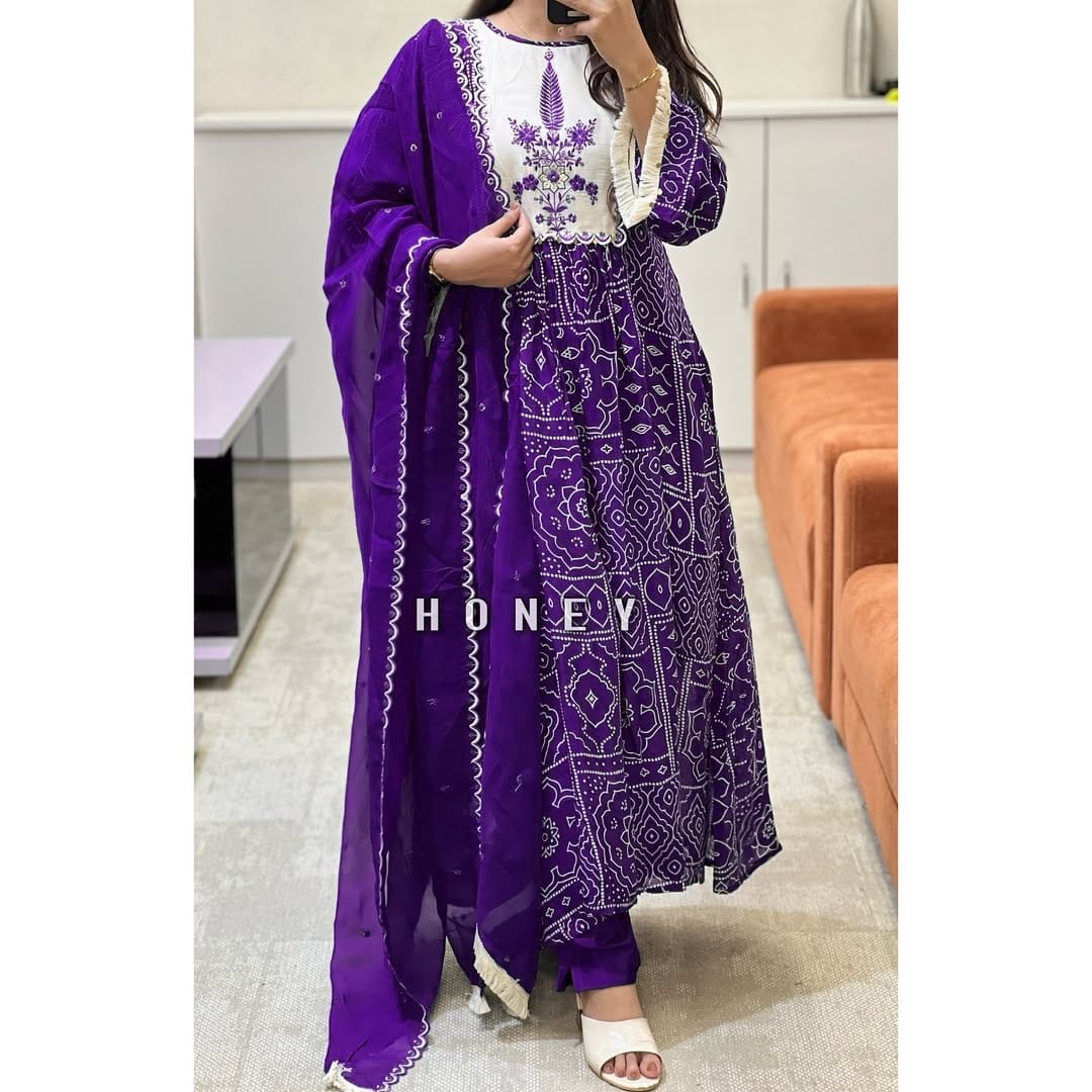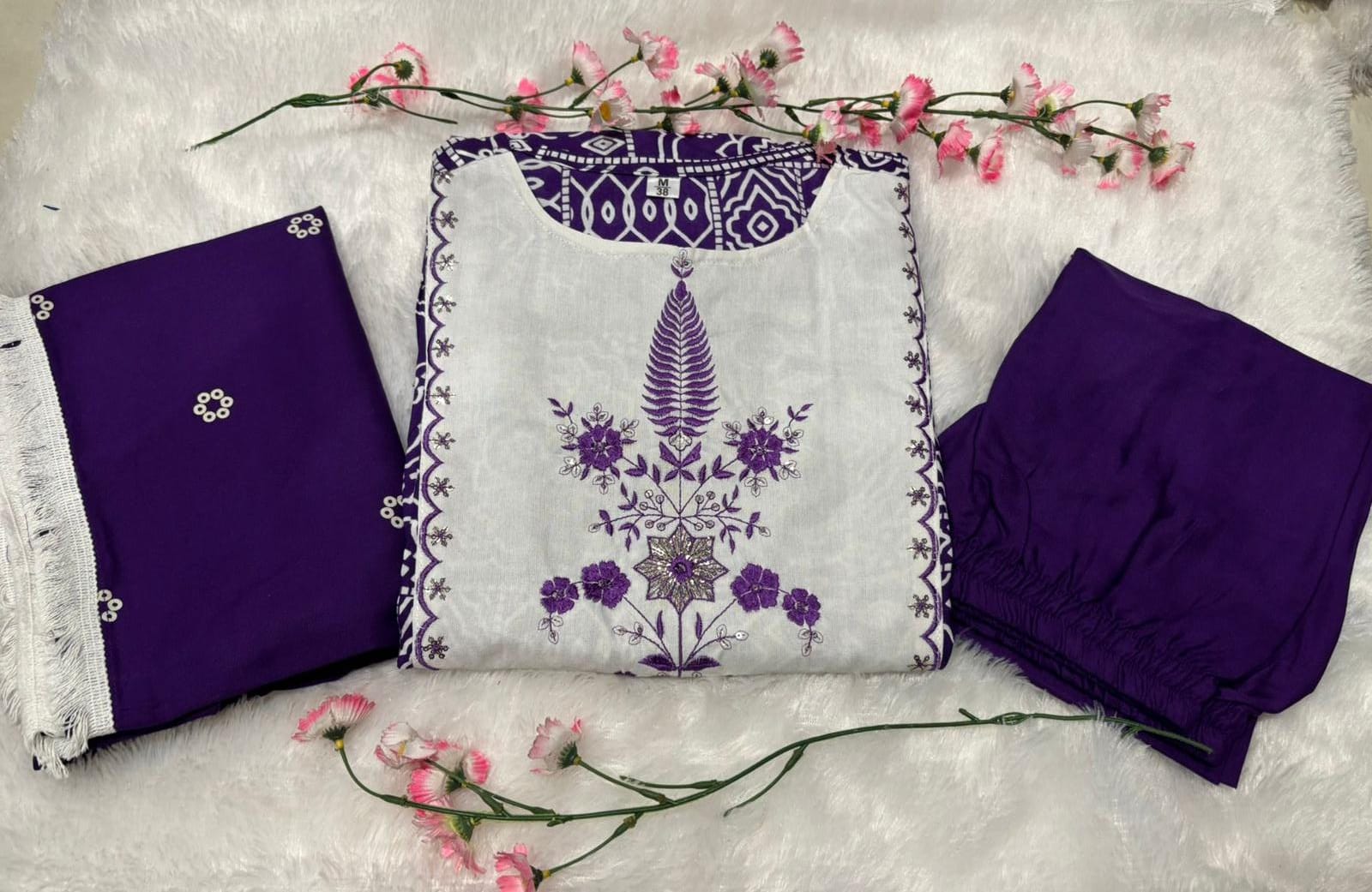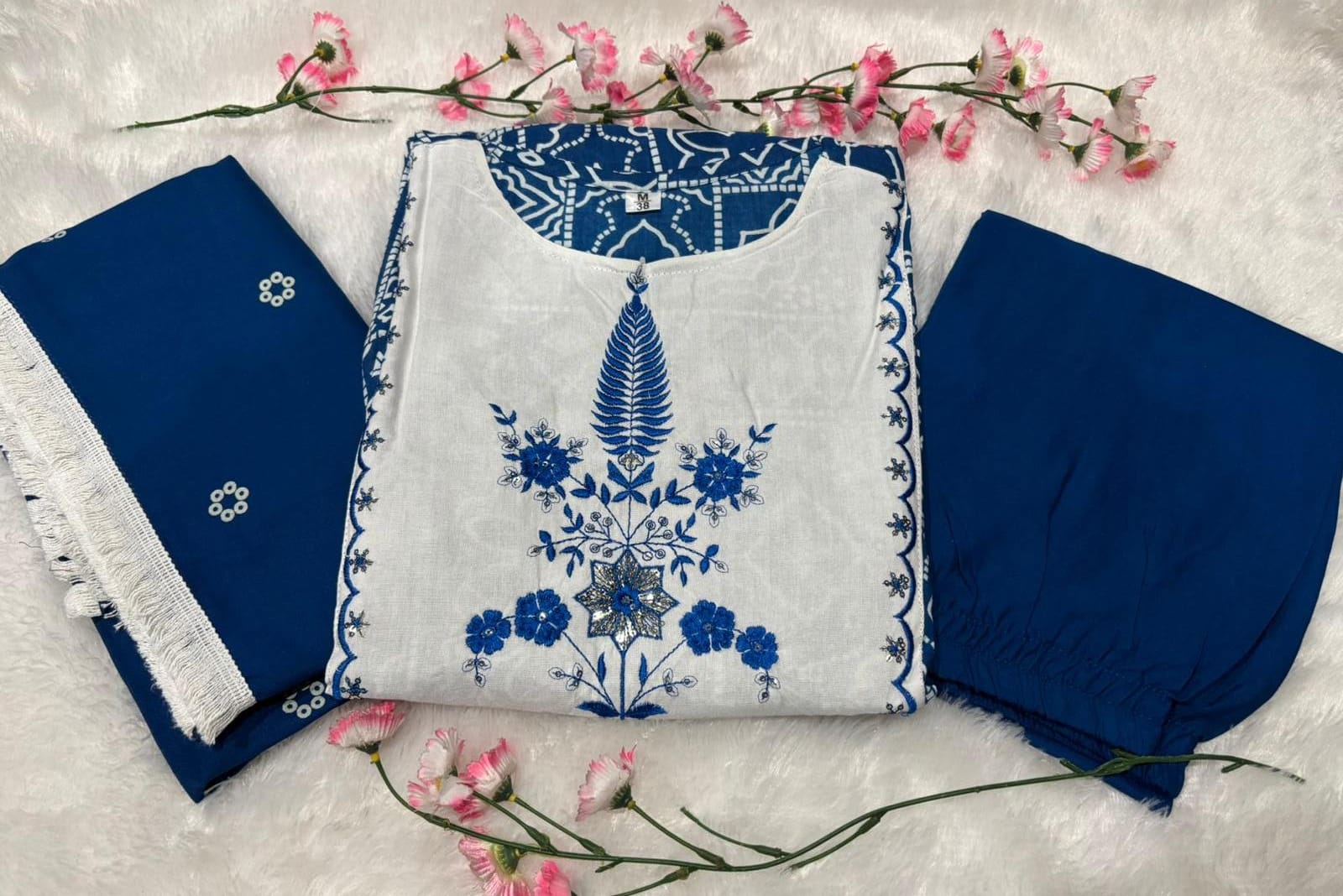 • Dupatta: Printed with complementary design
