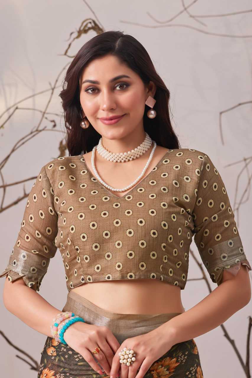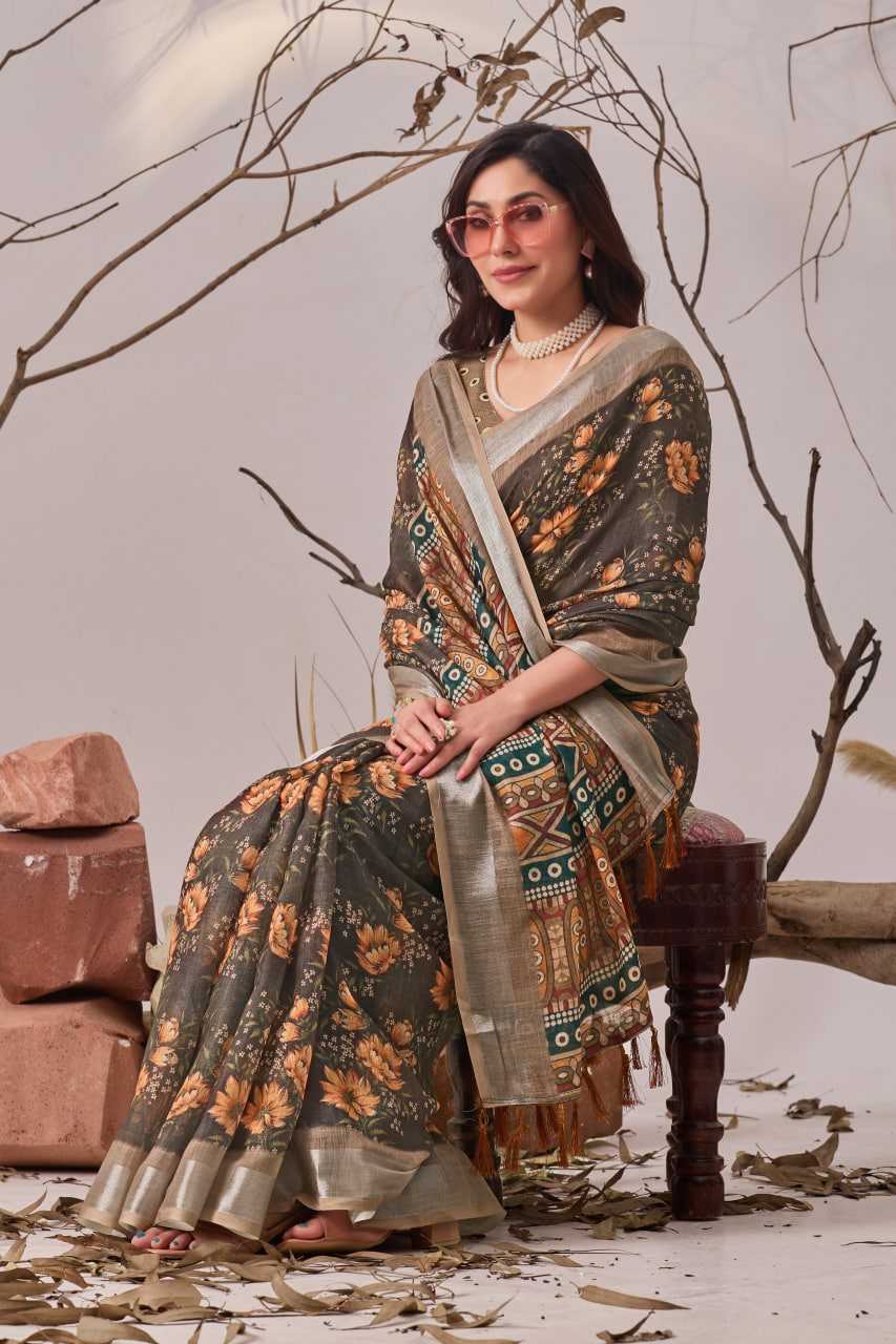 FABRIC:Linen Cotton Saree with Beautiful floral pattern Digital Printed Design (5.5 meters)