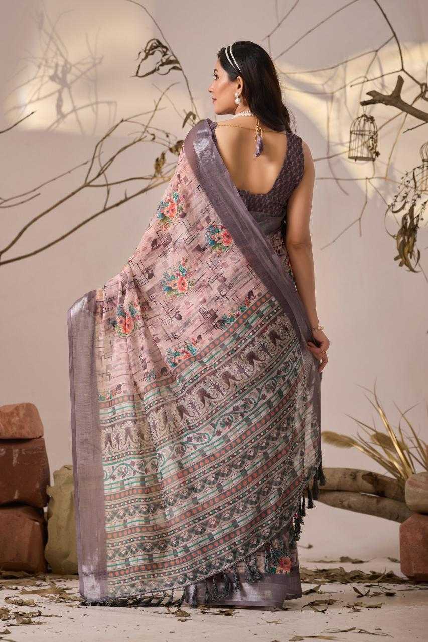 FABRIC: Premium Linen Cotton Saree with Elegant Digital Floral & Geometric Print & Classic Contrast Patola Style Border (5.5 Mtr Saree)