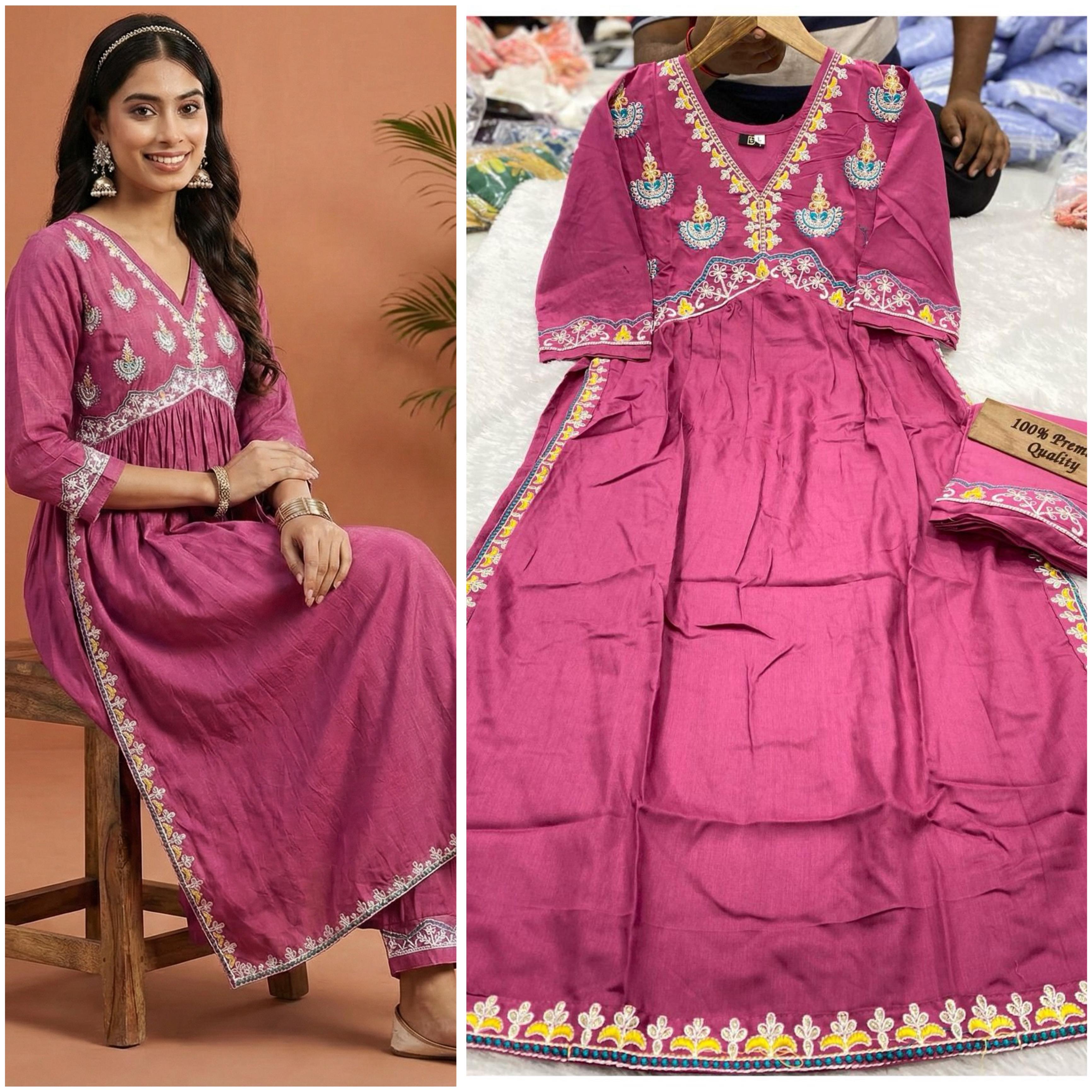 • Top Fabric: Heavy rayon cotton with beautiful front embroidery & Nayra cut work