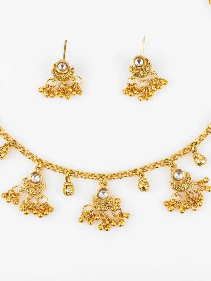 Elevate your elegance with our stunning gold-plated necklace set, perfectly complemented by matching earrings. Crafted with precision, this exquisite jewelry set features a lustrous finish that adds a touch of sophistication to any outfit, whether for a special occasion or everyday wear. The lightweight design ensures comfort, while the timeless style makes it a versatile addition to your collection. Treat yourself or gift it to a loved one for a memorable statement piece that shines with every wear.